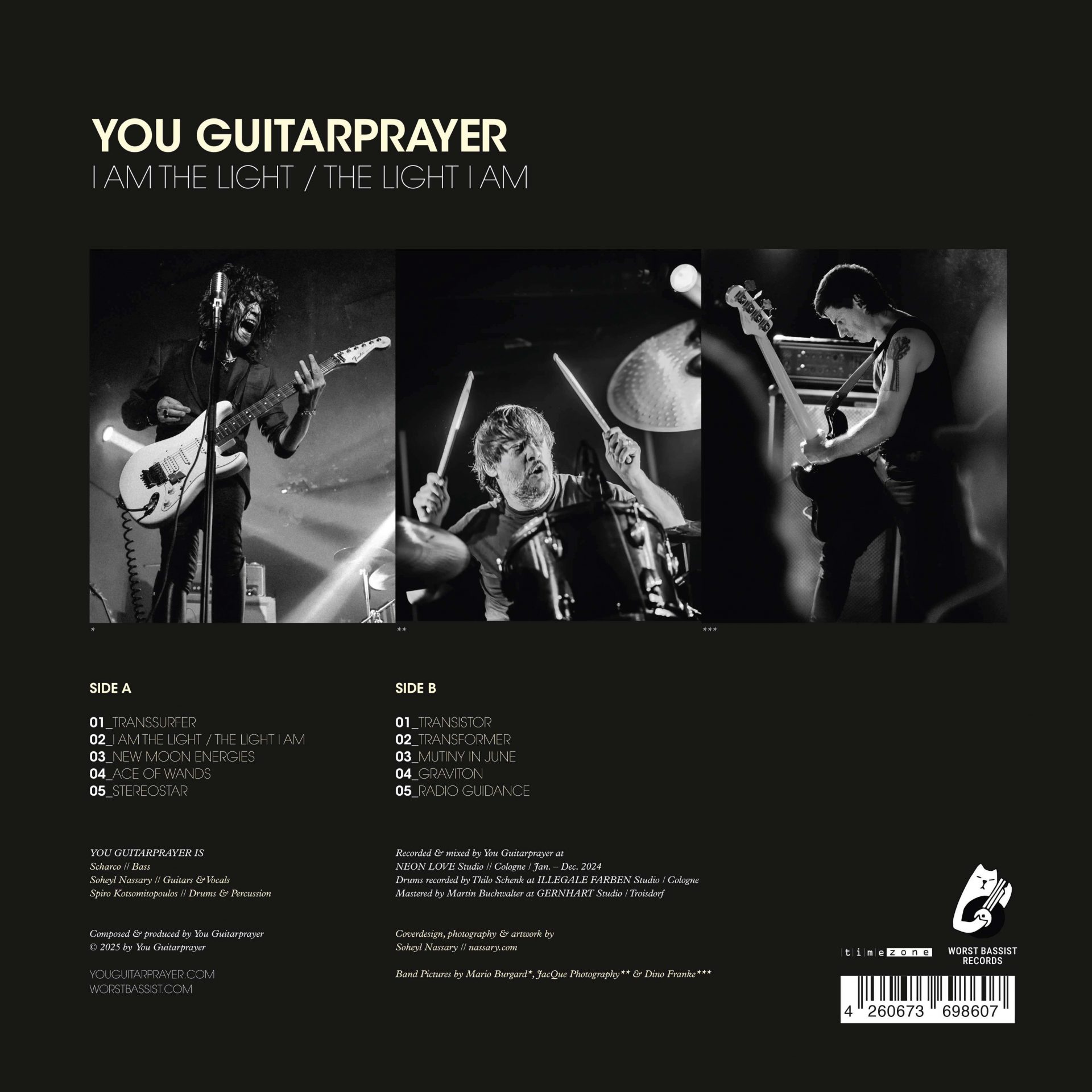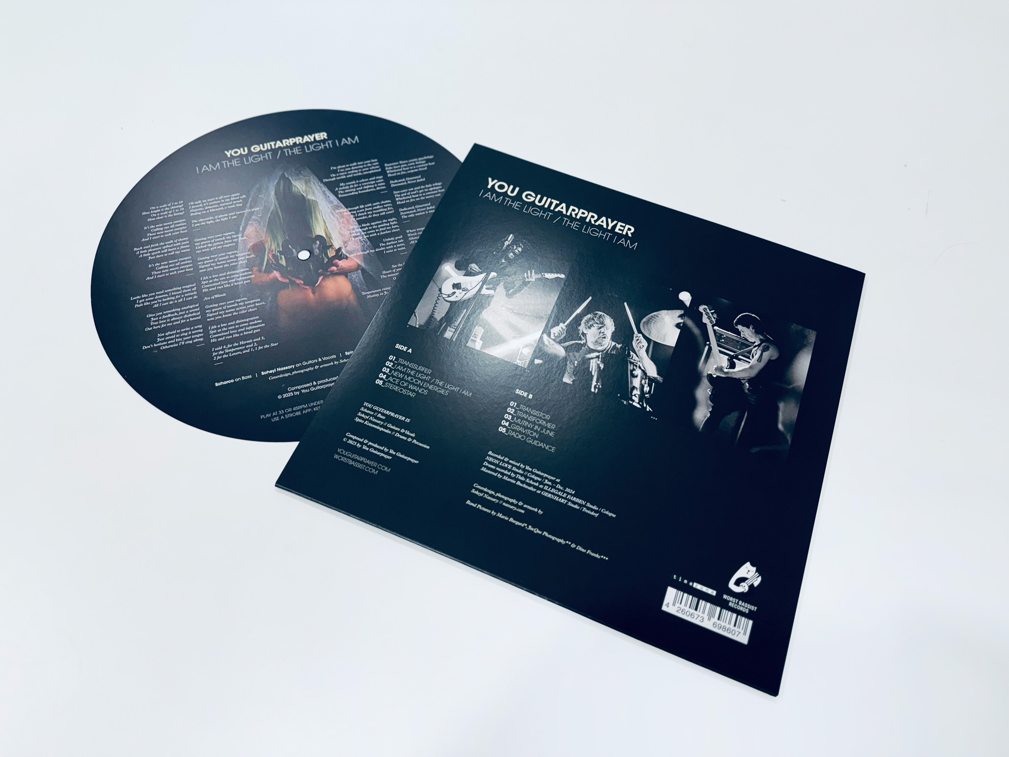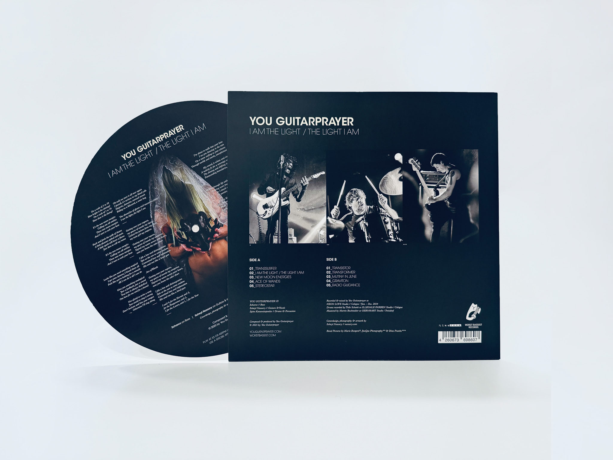 Für das zweite Album der Band You Guitarprayer (I Am The Light, The Light I Am) habe ich das vollständige visuelle Erscheinungsbild entwickelt – inklusive Artwork, Coverdesign und fotografischer Umsetzung. Die Gestaltung spiegelt die musikalische Tiefe und Komplexität des Albums wider und verbindet psychedelische Ästhetik mit minimalistischer Formensprache.